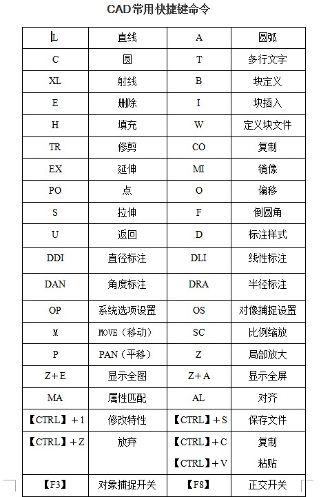 cad快捷键命令包含了:绘图命令,视窗缩放,尺寸标注,对象特征以及一些常用CTRL快捷键等。